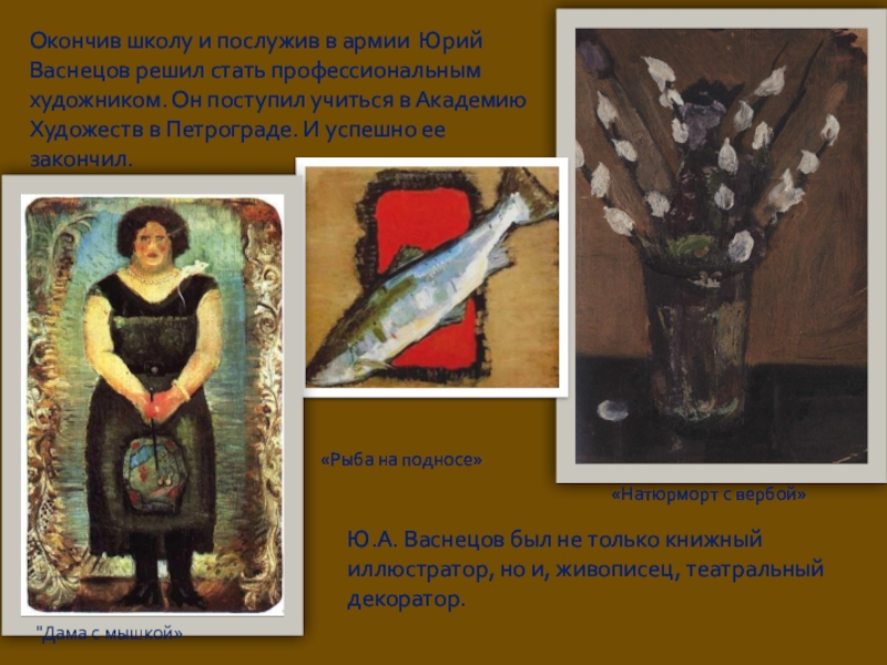Ю.А. Васнецов был не только книжный иллюстратор, но и, живописец, театральный декоратор.