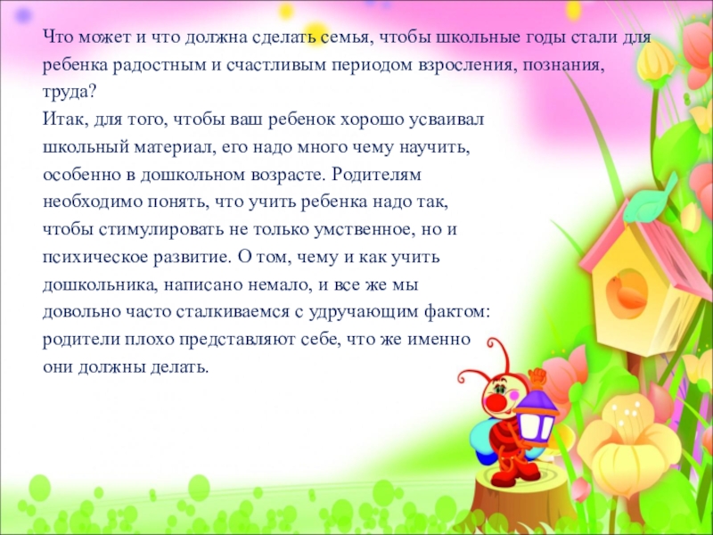 Слайд 5Что может и что должна сделать семья, чтобы школьные годы стали