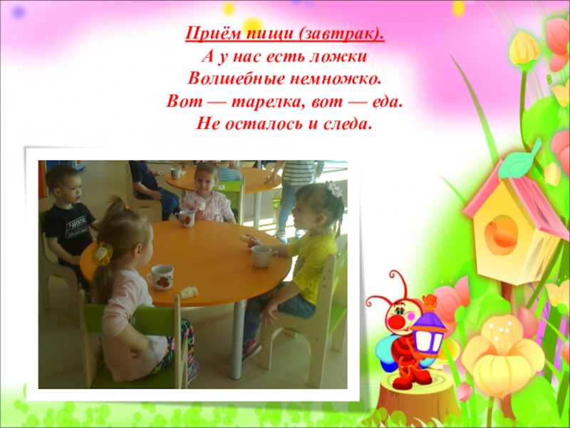 Слайд 10Приём пищи (завтрак).