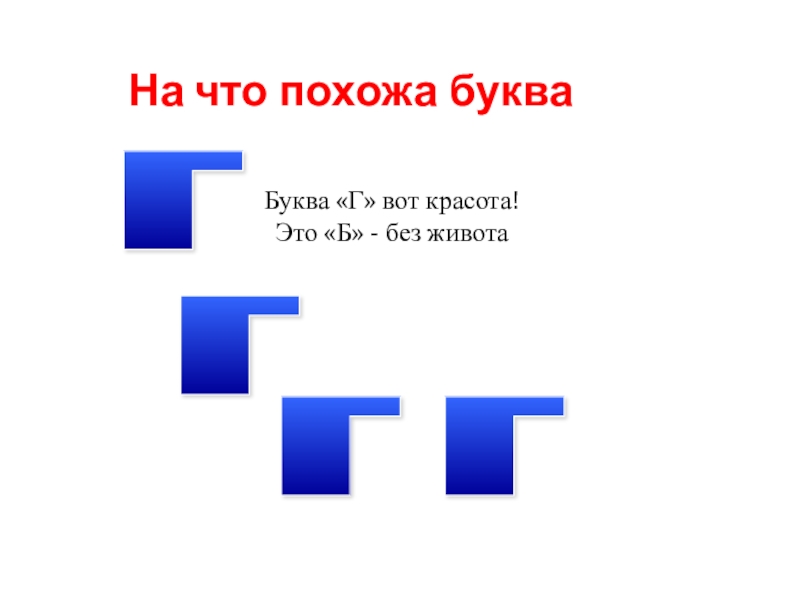 На что похожа букваГ Буква «Г» вот красота!Это «Б» - без животаГ Г Г