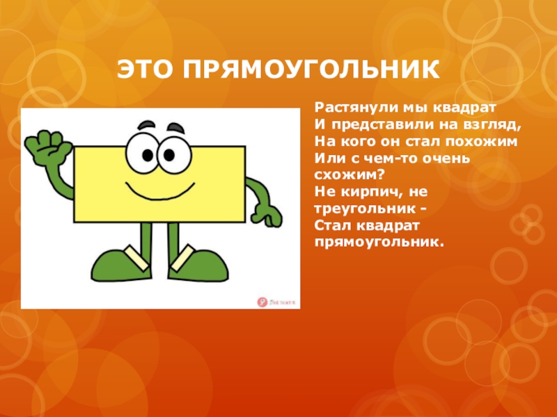 ЭТО ПРЯМОУГОЛЬНИКРастянули мы квадратИ представили на взгляд,На кого он стал похожимИли с чем-то очень схожим?Не кирпич, не