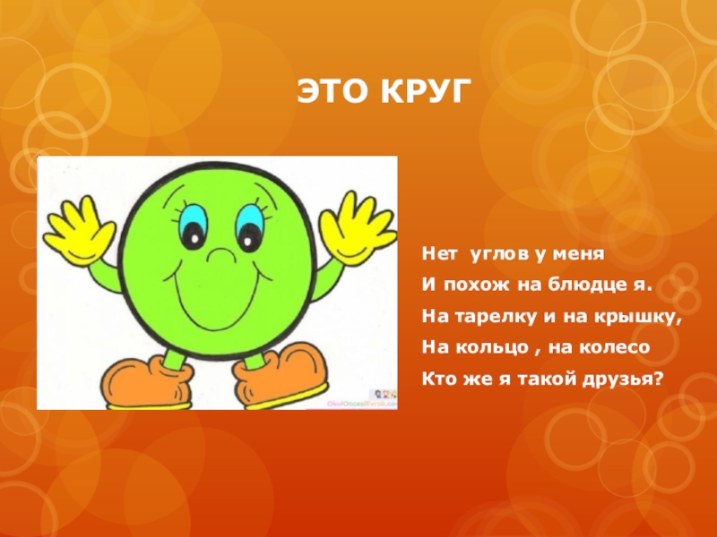 ЭТО КРУГ Нет углов у меняИ похож на блюдце я.На тарелку и на крышку, На кольцо ,