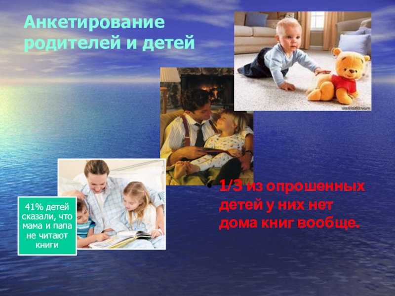 Анкетирование родителей и детей 1/3 из опрошенных детей у них нет дома книг вообще.
