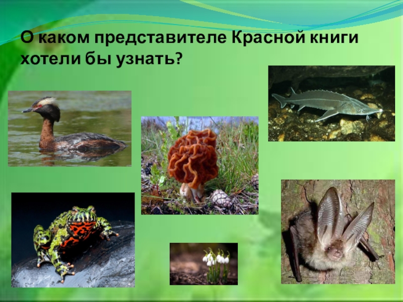 Слайд 11О каком представителе Красной книги хотели бы узнать?