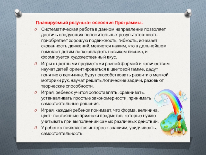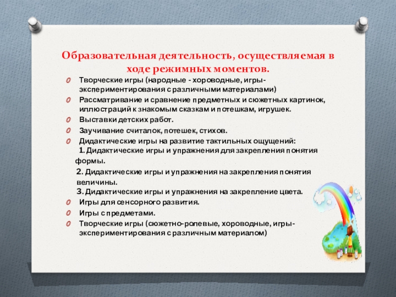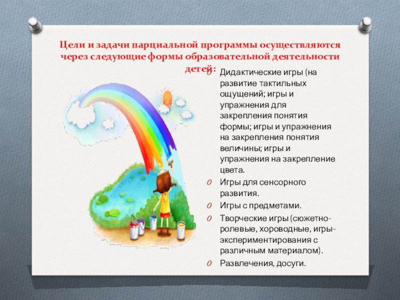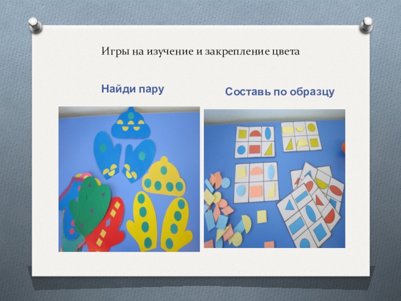 Дидактические игры (на развитие тактильных ощущений; игры и упражнения для закрепления понятия формы; игры и упражнения на закрепления понятия величины; игры и упражнения на закрепление цвета.