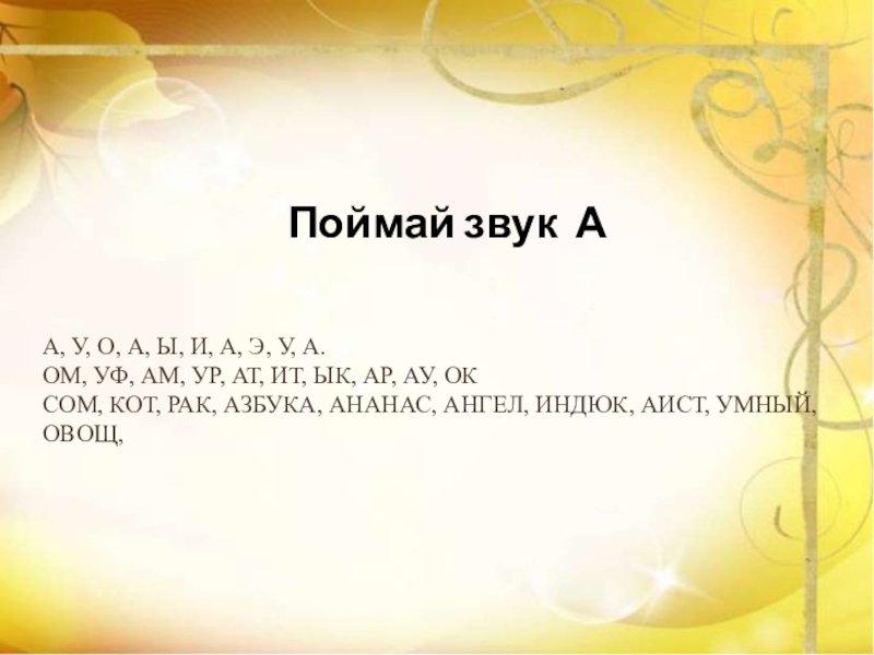 Поймай звук Аа, у, о, а, ы, и, а, э, у, а.ом, уф, ам, ур, ат, ит,