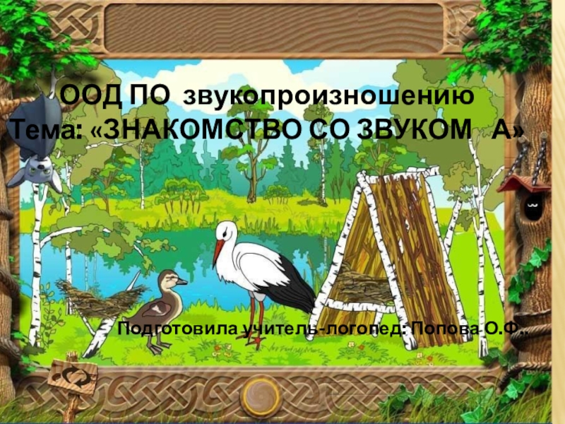 ООД ПО звукопроизношениюТема: «ЗНАКОМСТВО СО ЗВУКОМ  А»Подготовила учитель-логопед: Попова О.Ф..