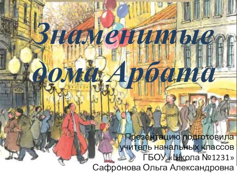 Знаменитые дома АрбатаПрезентацию подготовилаучитель начальных классовГБОУ «Школа №1231»Сафронова Ольга Александровна