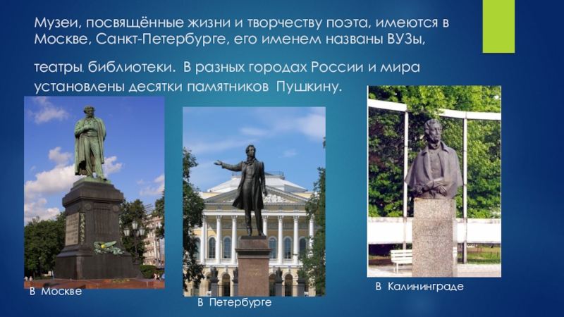 Пушкин писал прозу и стихи, поэмы , романы, сказки в стихах (Сказка о попе и о работнике его Балде»;«Сказка о царе Салтане, о сыне его славном и могучем богатыре князе Гвидоне и о прекрасной царевне лебеди»; «Сказка о рыбаке и рыбке»;«Сказка о мёртвой царевне и семи богатырях»; «Сказка о золотом петушке».