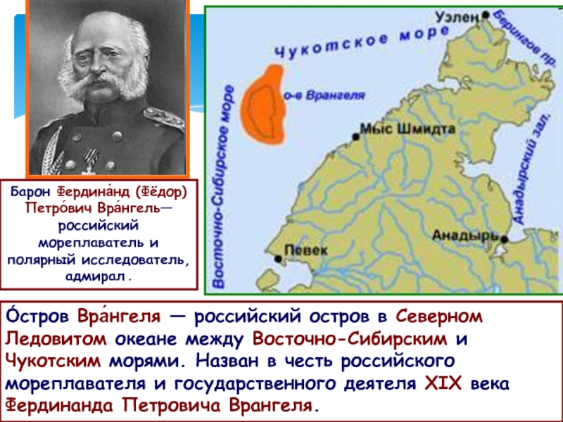 Барон Фердина́нд (Фёдор) Петро́вич Вра́нгель— российский мореплаватель и полярный исследователь, адмирал .