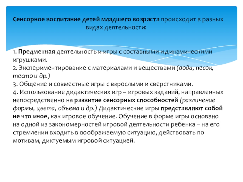 окружающей действительности, служит основой познания мира, первой ступенью которого является чувственный опыт. В раннем детстве ребенок особенно чувствителен к сенсорным воздействиям. Упущения в формировании сенсорной сферы ребенка на ранних этапах его развития компенсируются с трудом, а порой невосполнимы. Поэтому значение сенсорного развития в раннем возрасте трудно переоценить.