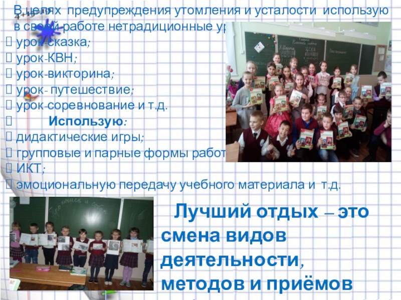 Лучший отдых – это смена видов деятельности, методов и приёмов работы.