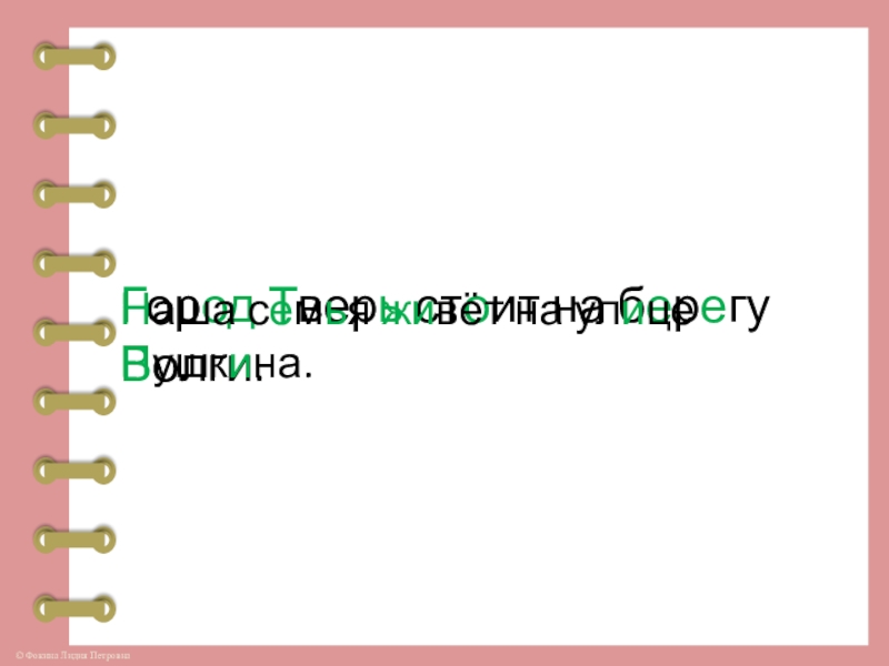Город Тверь стоит на берегу Волги.Наша семья живёт на улице Пушкина.