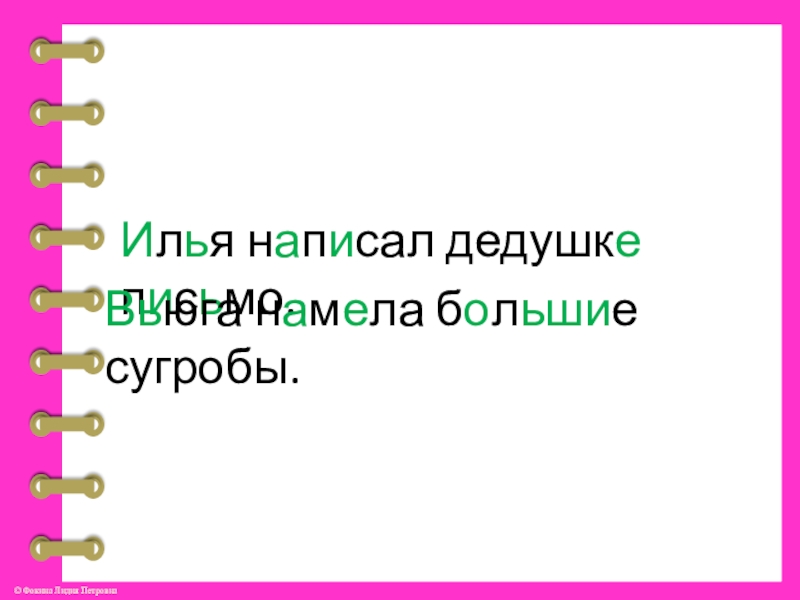 Илья написал дедушке письмо.Вьюга намела большие сугробы.