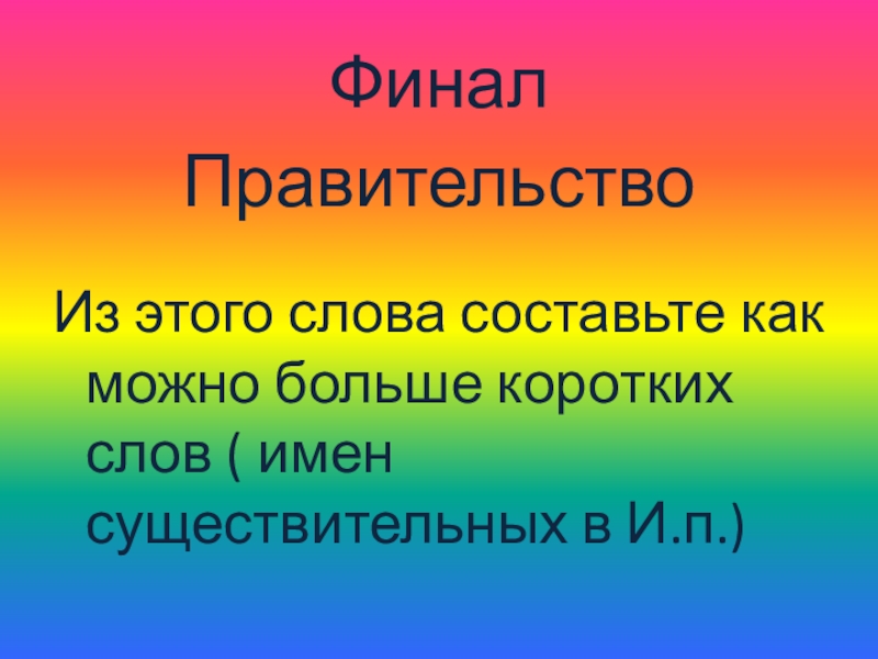 ФиналПравительствоИз этого слова составьте как можно больше коротких слов ( имен существительных в И.п.)