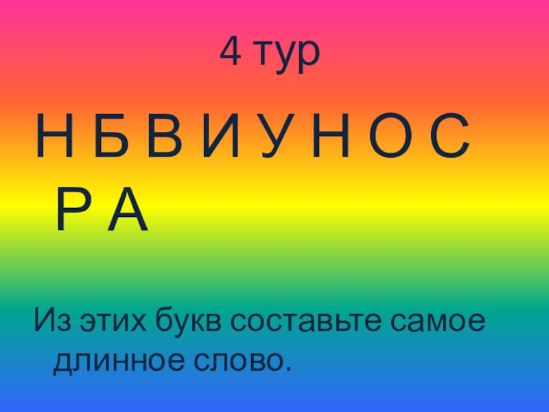 4 турН Б В И У Н О С Р АИз этих букв составьте самое длинное слово.