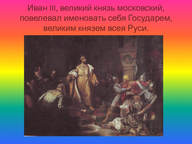 Иван III, великий князь московский, повелевал именовать себя Государем, великим князем всея Руси.