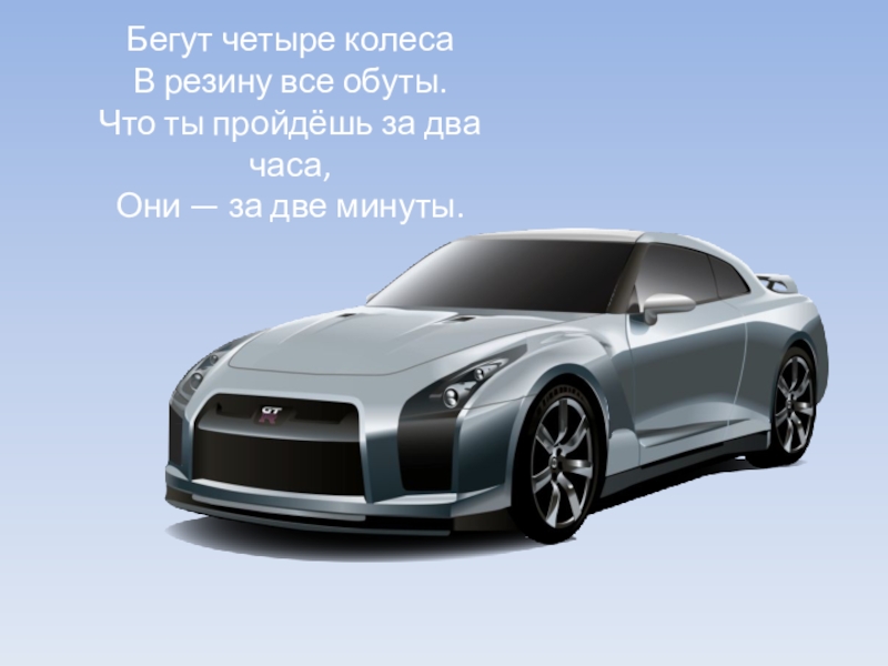 Слайд 8Бегут четыре колеса В резину все обуты. Что ты пройдёшь за два часа, Они