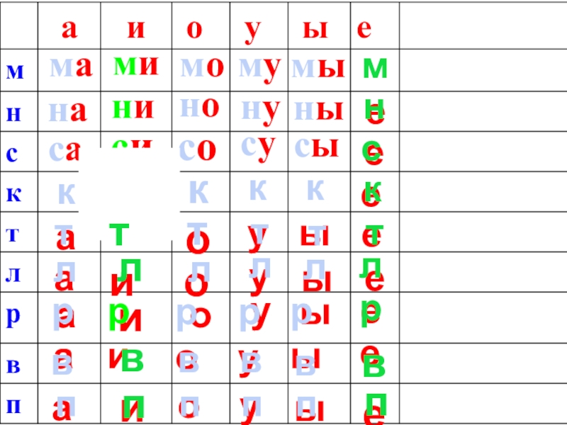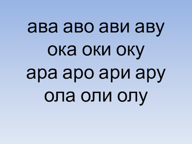 Слайд 9ава аво ави аву ока оки оку ара аро ари ару ола оли
