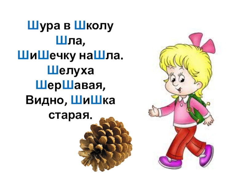 Шура в Школу Шла, ШиШечку наШла. Шелуха ШерШавая, Видно, ШиШка старая.