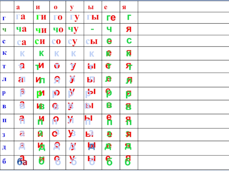 гачасагигогугычичочу-сисосусышашо-шутатитотытулалилолулырарирорурывавивовувыгечесешетелеревепапипопупыпешизазизозузызедадидодудыдезя-ся-тялярявяпягядябибобубыбебя