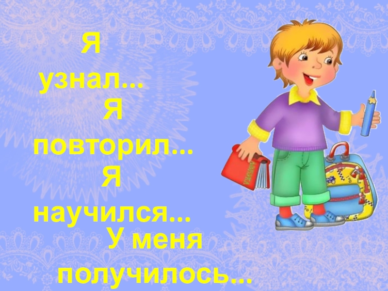 Я узнал...Я повторил...Я научился...У меня получилось...
