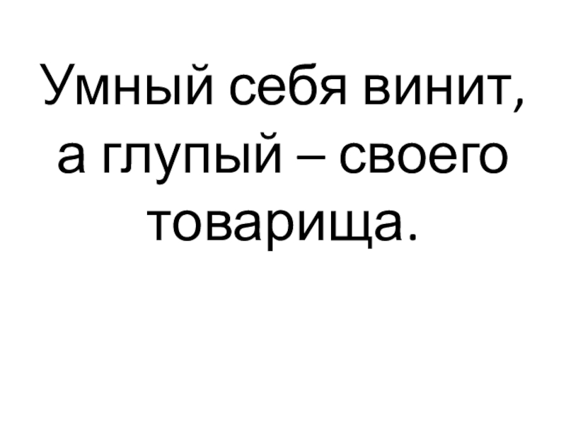 Слайд 13Умный себя винит, а глупый – своего товарища.
