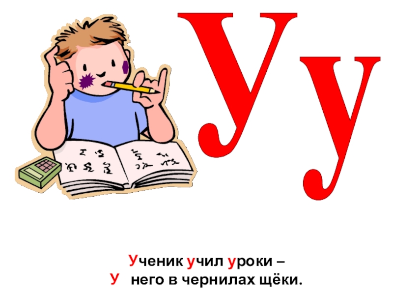Ученик учил уроки – У  него в чернилах щёки.Уу