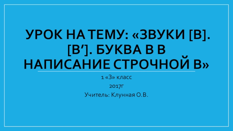 Учитель: Клунная О.В.
