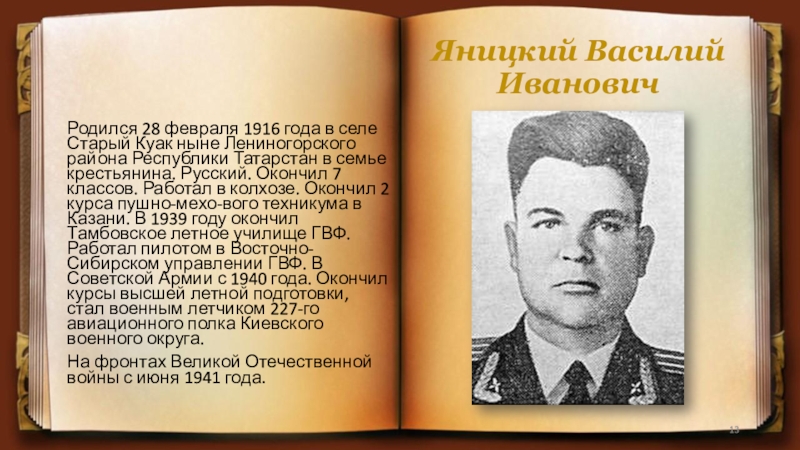 Родился в 1916 году в селе Старое
