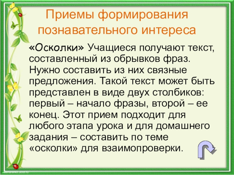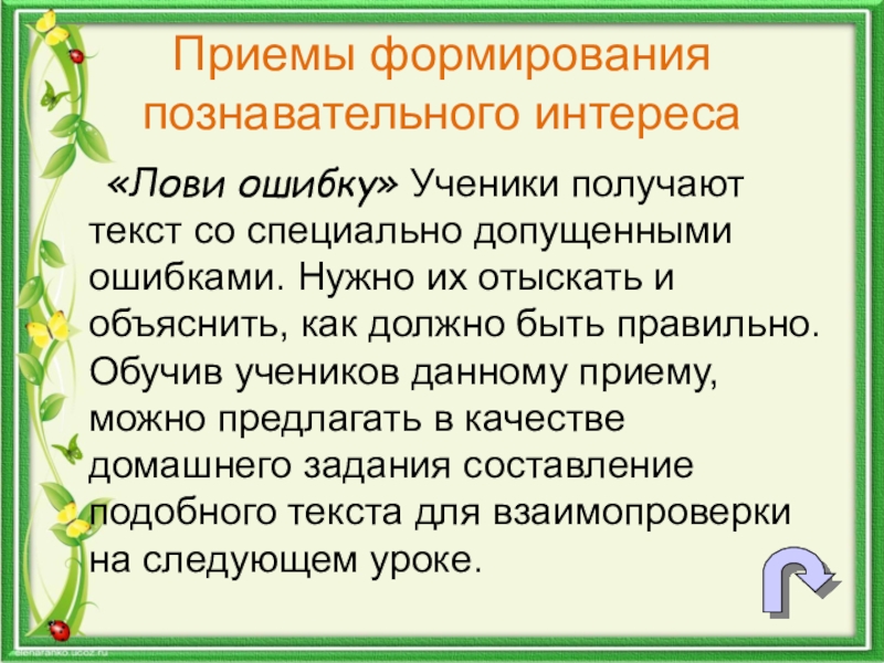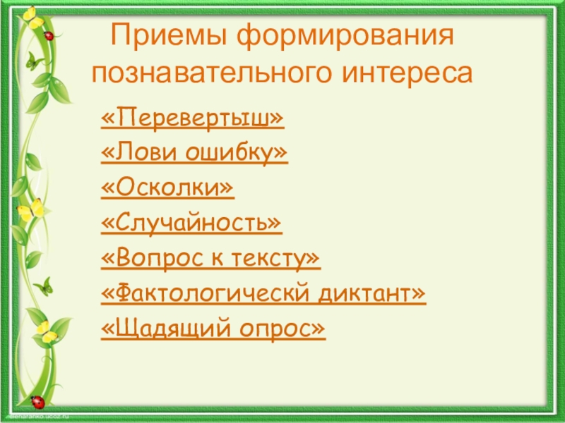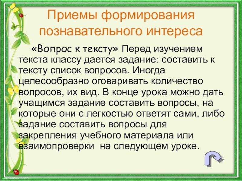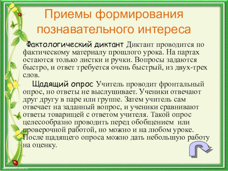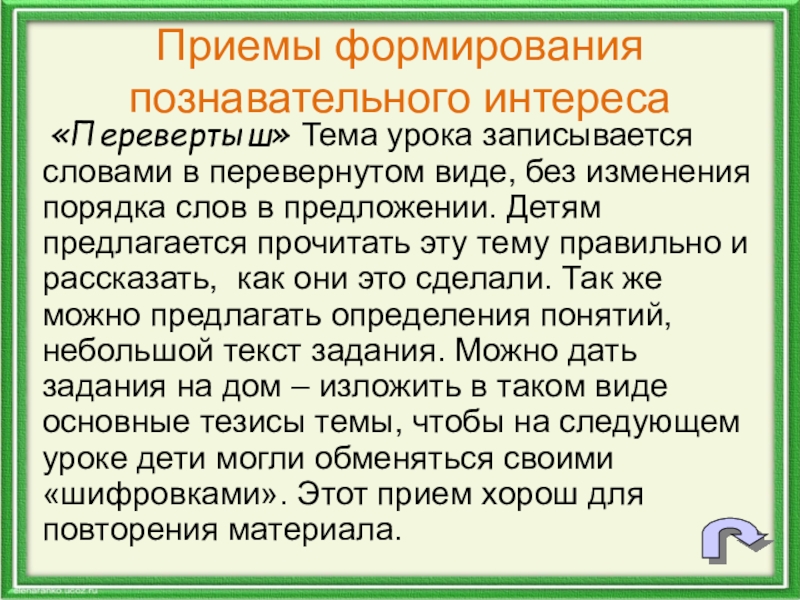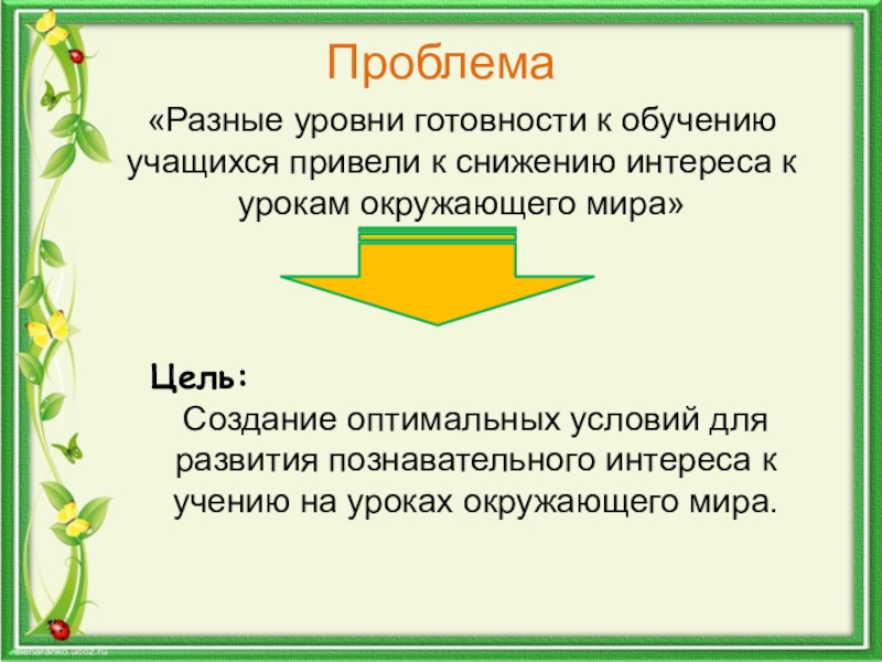 Создание оптимальных условий для развития познавательного интереса к учению на уроках окружающего мира.