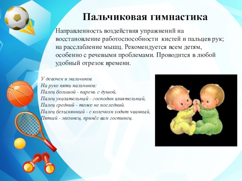 Слайд 16Пальчиковая гимнастика