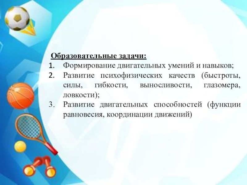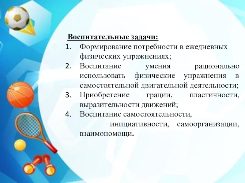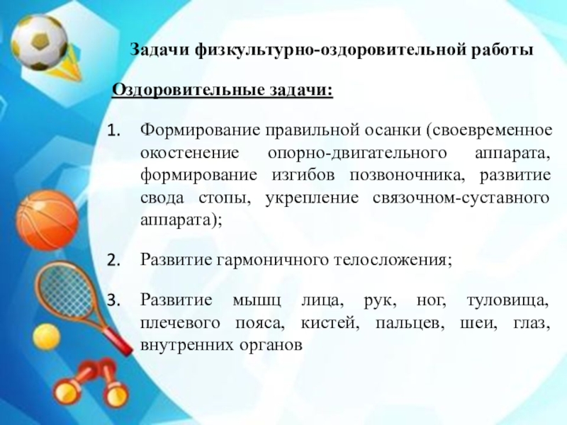 Оздоровительные задачи: