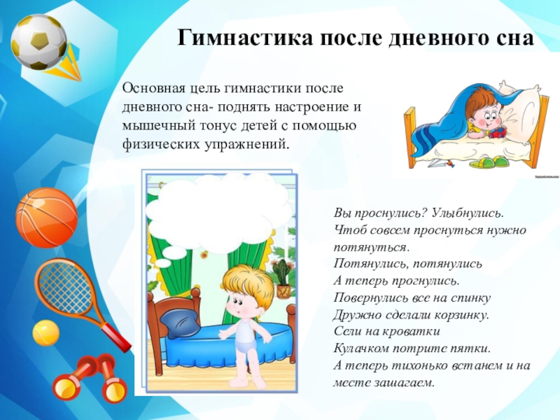 Слайд 19Гимнастика после дневного сна