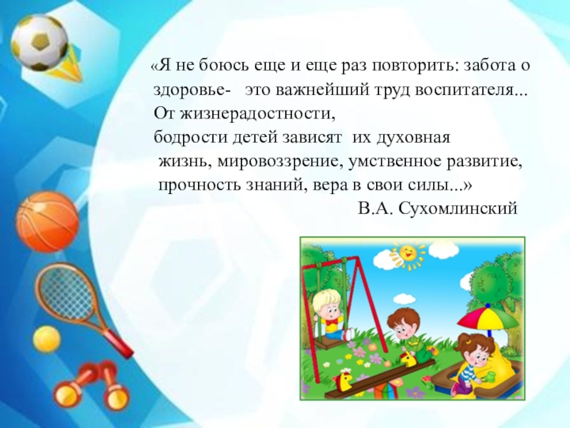 Слайд 27 «Я не боюсь еще и еще раз повторить: забота о