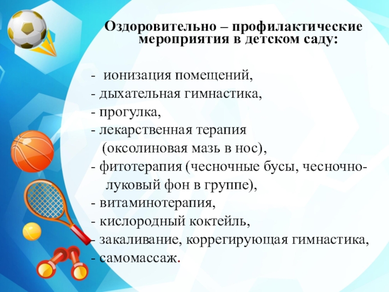 Оздоровительно – профилактические мероприятия в детском саду: