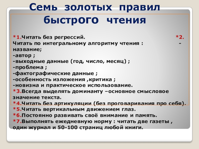 Семь золотых правил быстрого чтения