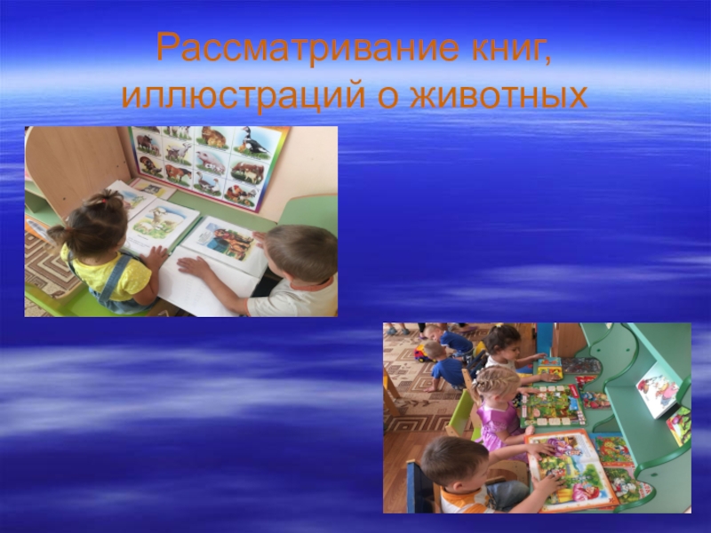 Слайд 13Рассматривание книг, иллюстраций о животных