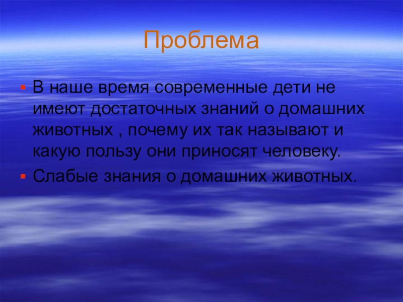 ПроблемаВ наше время современные дети не имеют достаточных знаний о домашних животных , почему их так называют