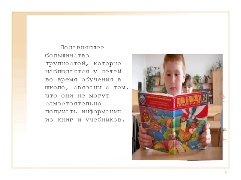 школе, связаны с тем, что они не могут самостоятельно получать информацию из книг и учебников.