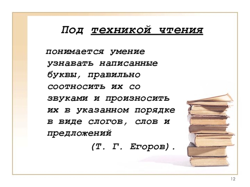 и быстрое восприятие и озвучивание слов, основанное на связи между из зрительными образами, с одной стороны, и акустическими и речедвигательными с другой.