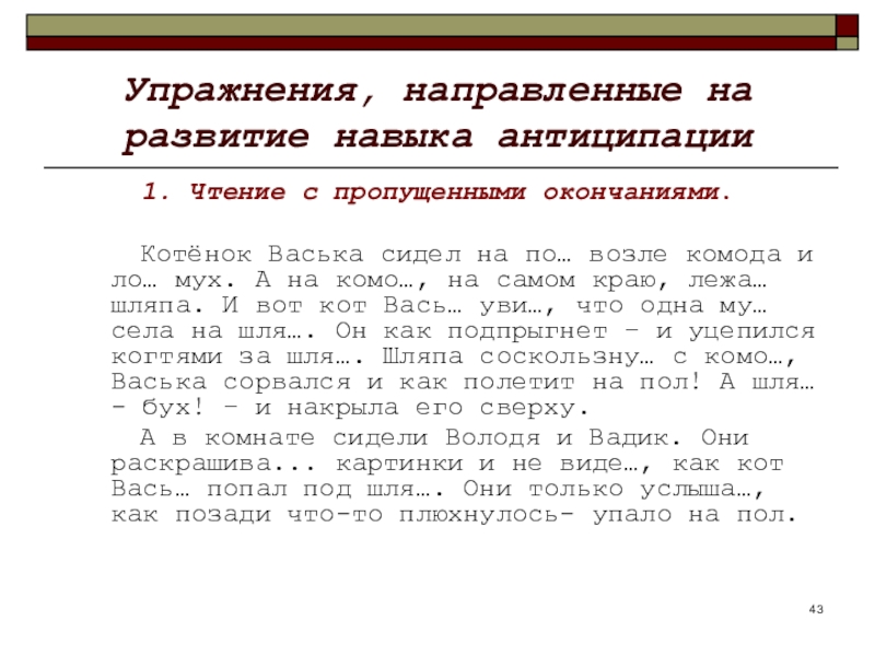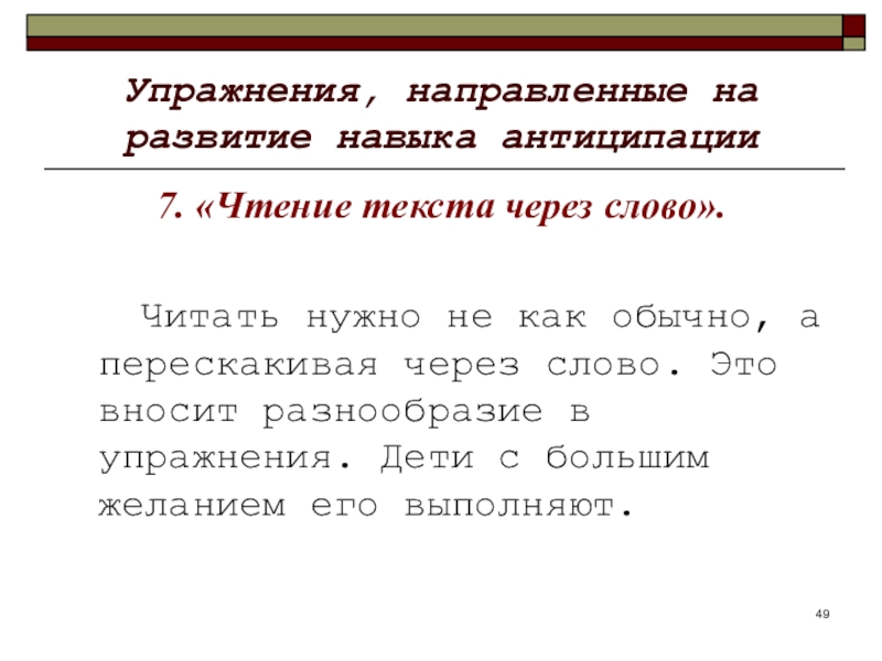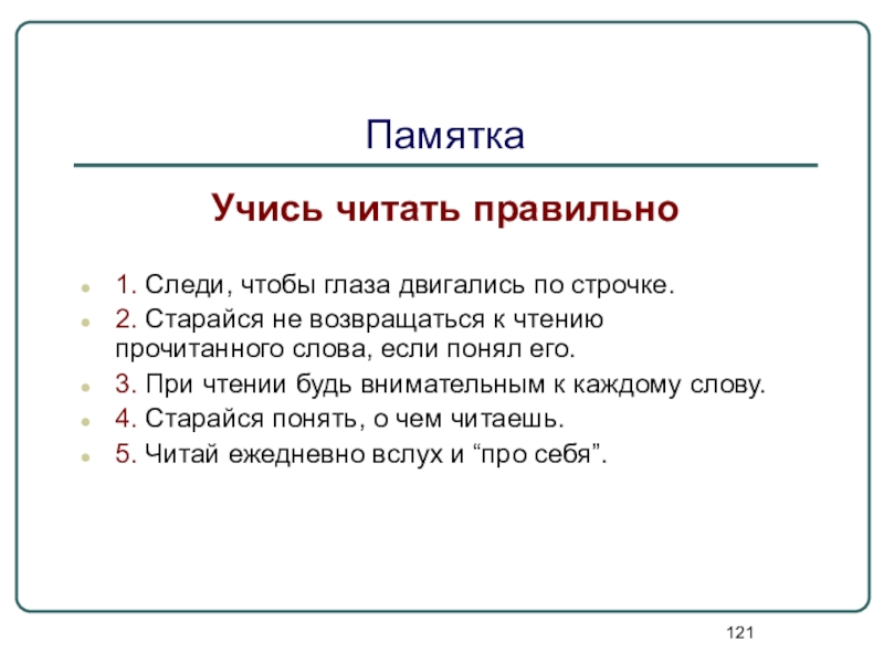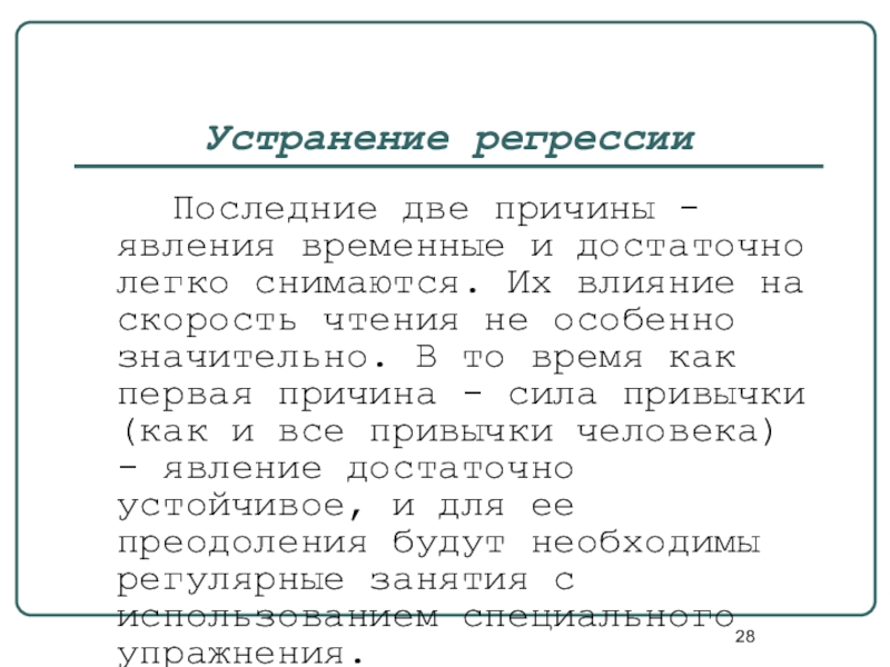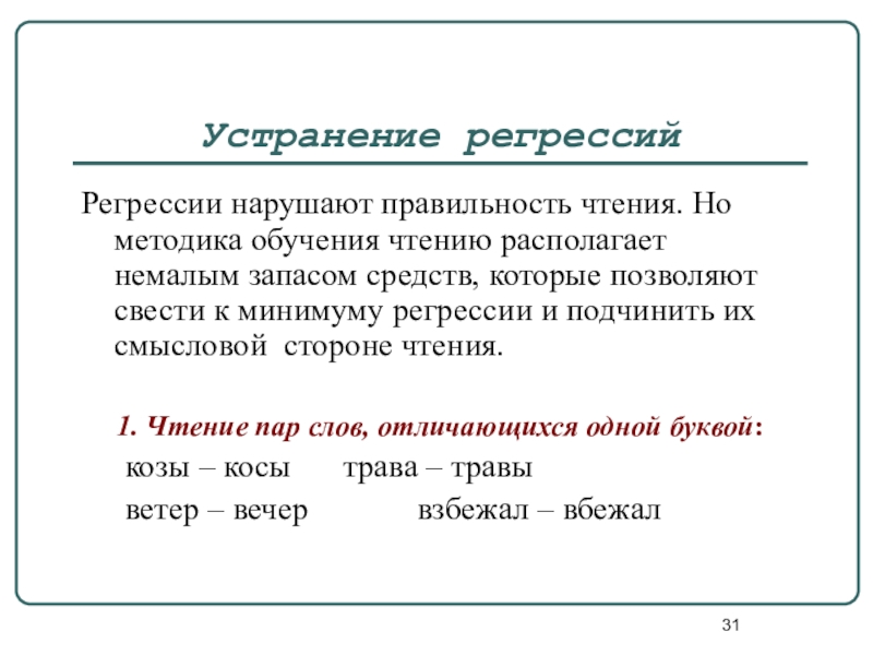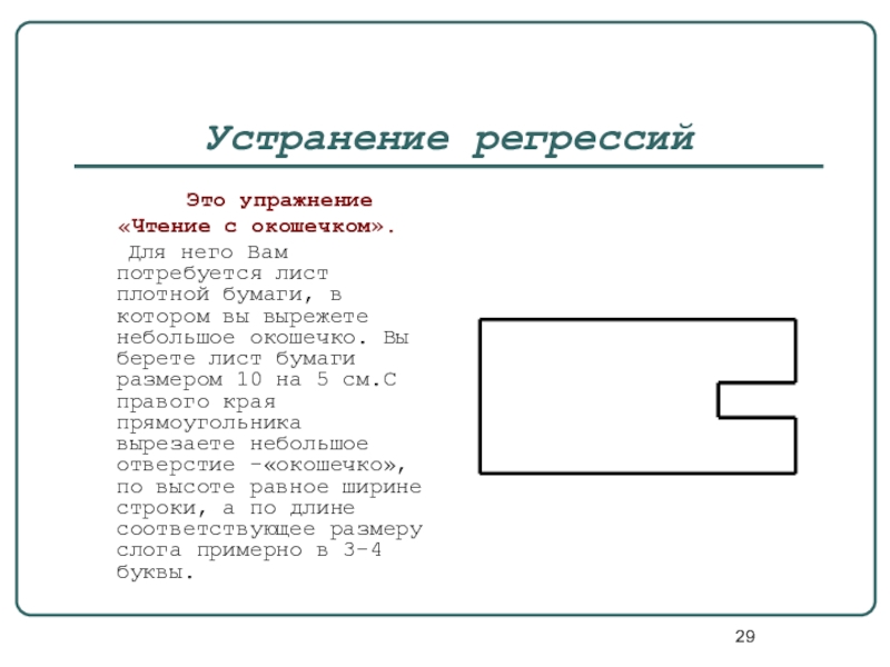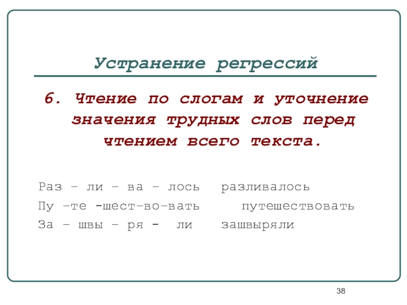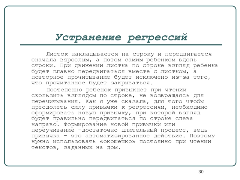 для понимания ребенка, то в этом случае предложите ему прочитать текст без регрессий, даже если отдельные места текста непонятны. Часто дальнейшее чтение снимает возможные вопросы и делает возвраты ненужными.
