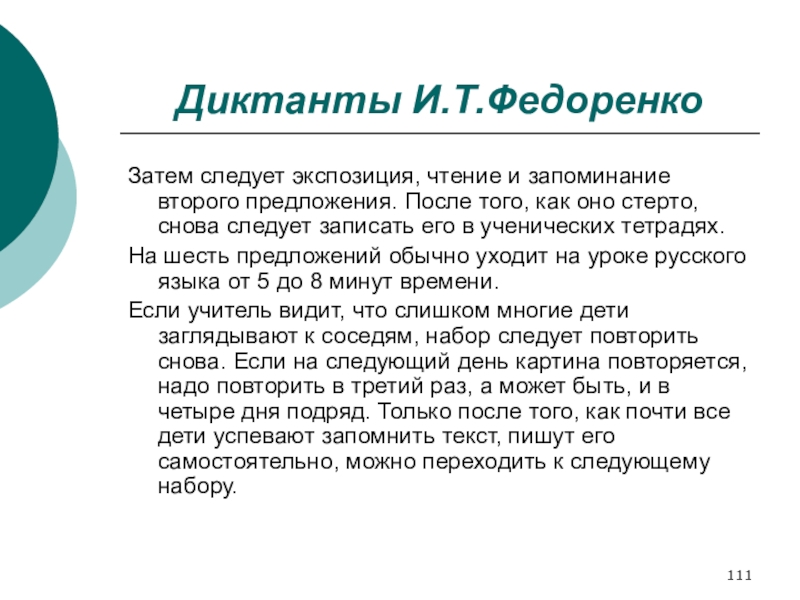 Затем следует экспозиция, чтение и запоминание второго предложения. После того,