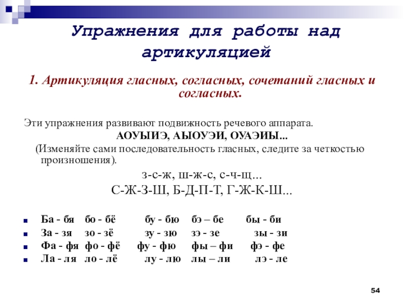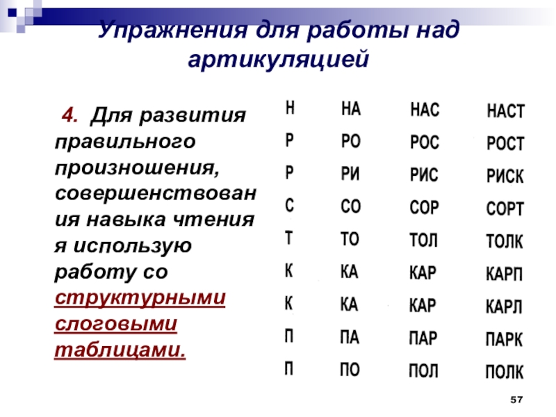 их со звуками и произносить их в указанном порядке в виде слогов, слов и предложений