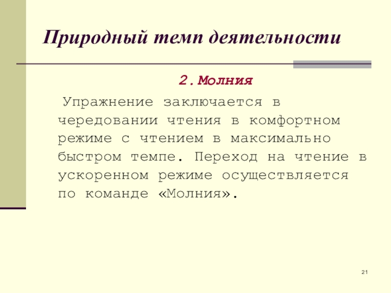 чтением в максимально быстром темпе. Переход на чтение в ускоренном режиме осуществляется по команде «Молния».