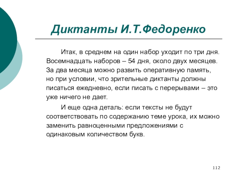 Восемнадцать наборов – 54 дня, около двух месяцев. За два месяца можно развить оперативную память, но при условии, что зрительные диктанты должны писаться ежедневно, если писать с перерывами – это уже ничего не дает.