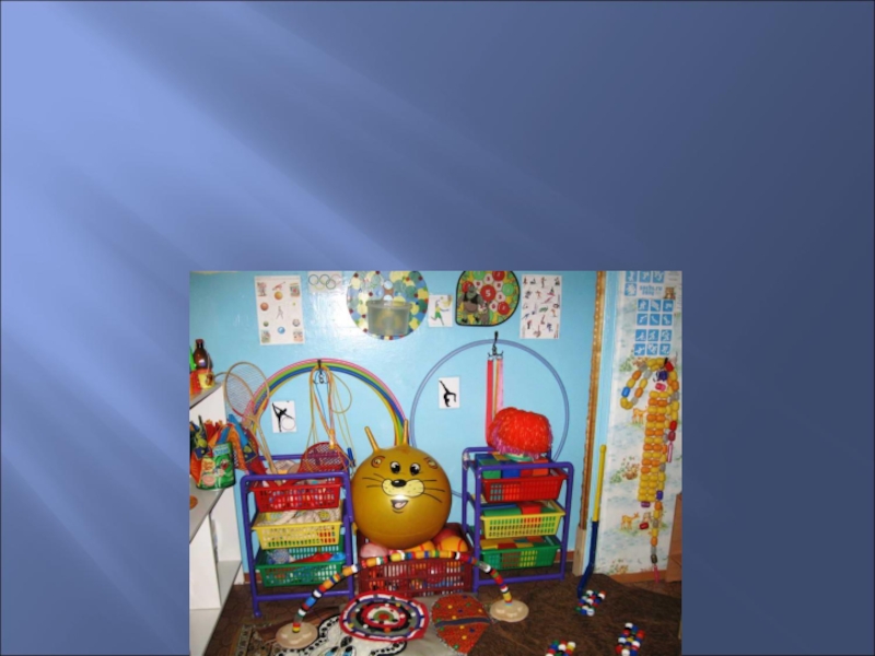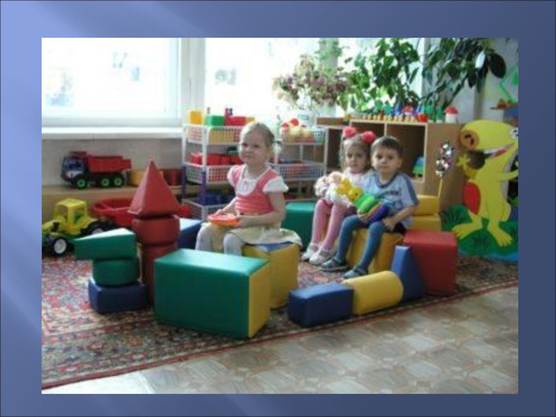 - следует уделять особое внимание визуальному оформлению предметной среды: использование больших ярких игрушек из искусственной кожи, ткани, пластика, необычных элементов образного декора;
