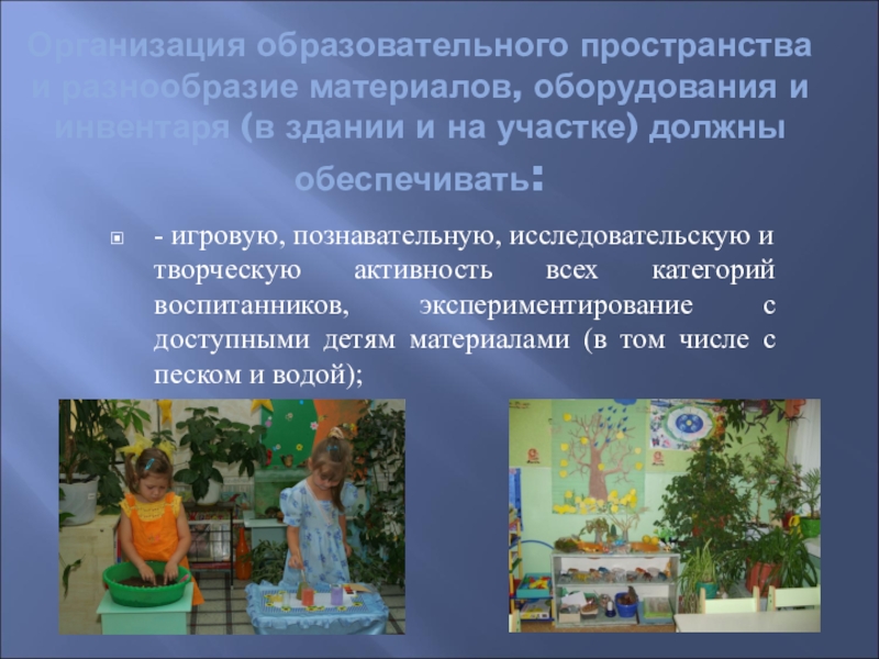 Слайд 5Организация образовательного пространства и разнообразие материалов, оборудования и инвентаря (в здании