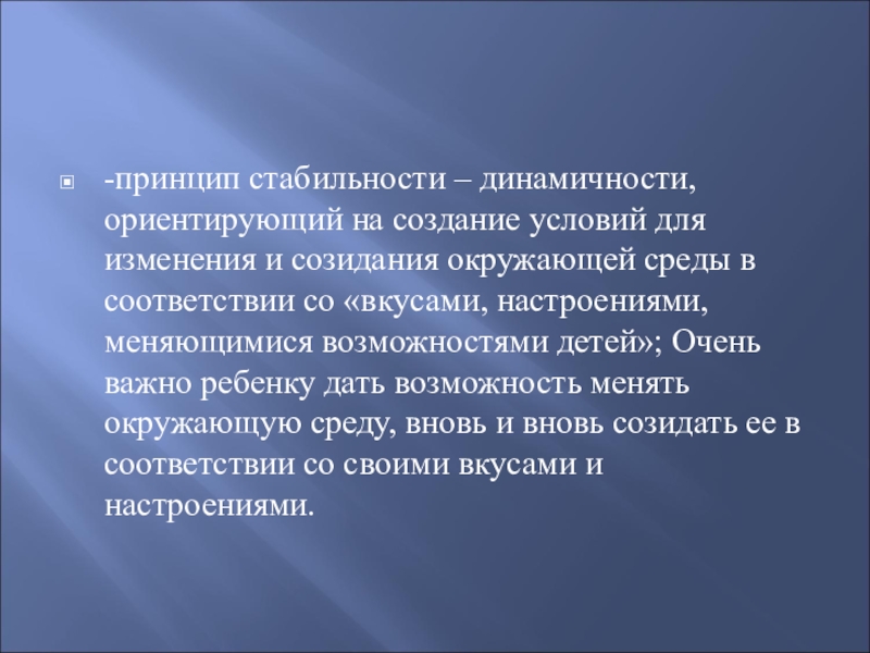 -принцип стабильности – динамичности, ориентирующий на создание условий для изменения и созидания