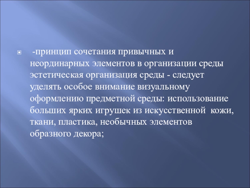 -принцип сочетания привычных и неординарных элементов в организации среды эстетическая организация среды